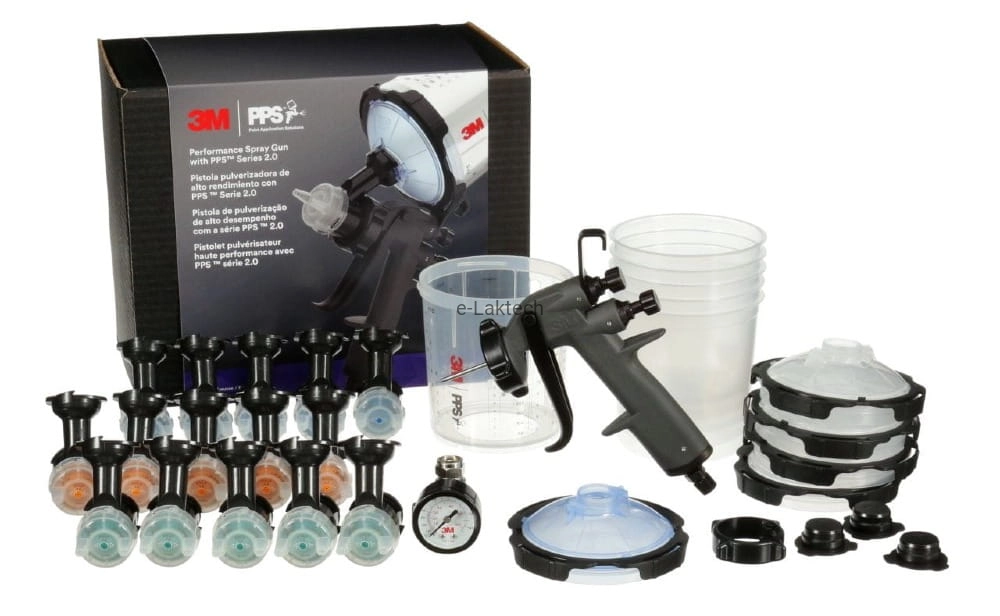 Zintegrowany z 3M PPS serii 2.0 systemem kubków do natrysku i wymiennymi dyszami pozwala na znaczną oszczędność czasu i dłuższy czas pracy.