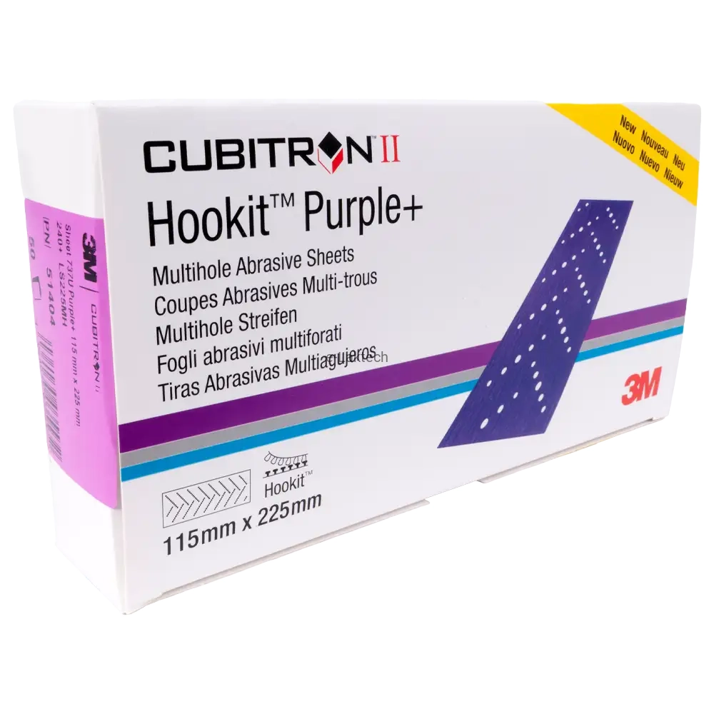Wysokiej klasy arkusz ścierny 3M™ Cubitron™ II Hookit™ 737U o wymiarach 115 x 225 mm i gradacji 240+ został zaprojektowany z myślą o profesjonalnych pracach szlifierskich, zwłaszcza w branży motoryzacyjnej.