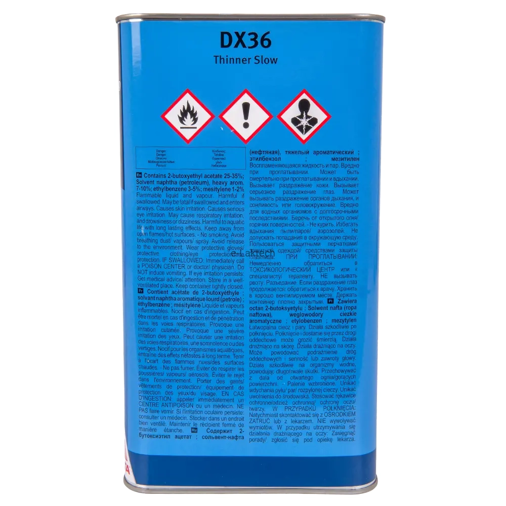 Duxone DX36 to wolny rozcieńczalnik stosowany w systemach lakierniczych marki Duxone, produkowanych przez Axalta Coating Systems. Jest on częścią szerokiej gamy produktów przeznaczonych do renowacji pojazdów, które obejmują lakiery bazowe, lakiery bezbarwne, podkłady, utwardzacze oraz inne środki pomocnicze.