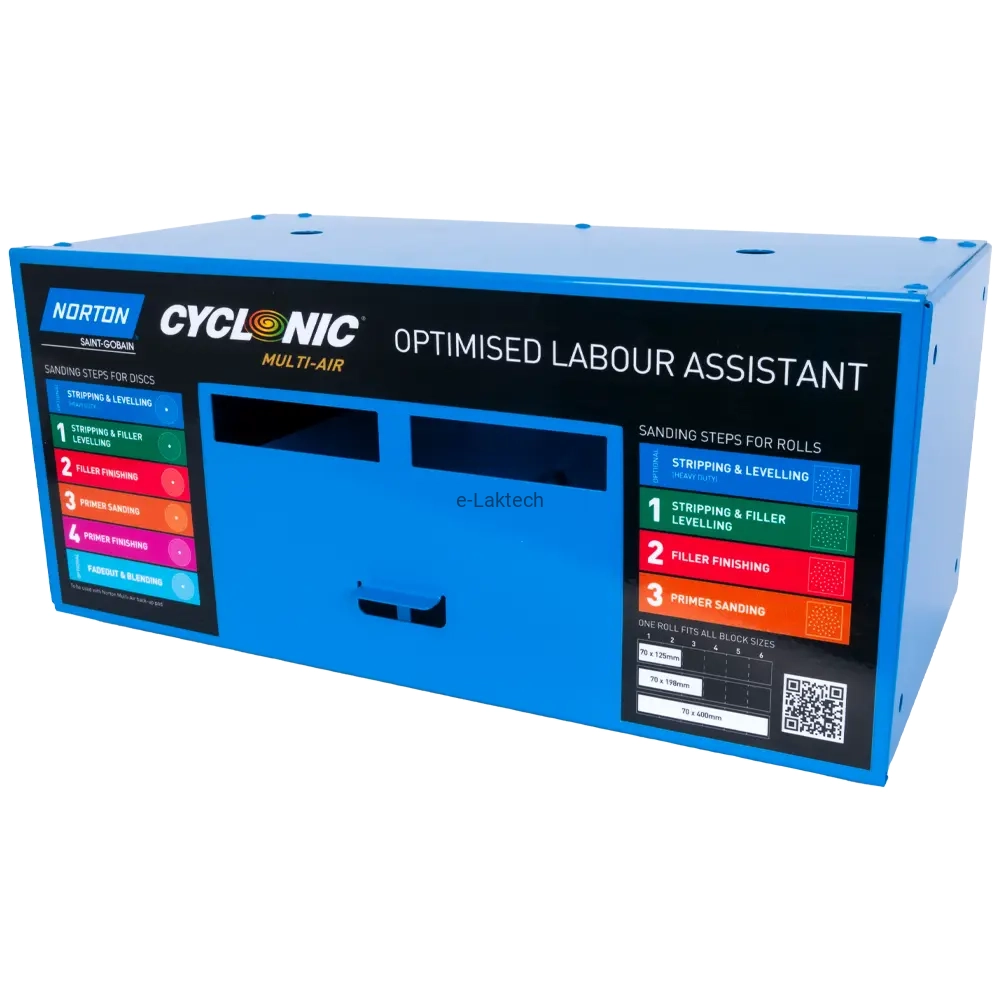 Praktyczny dyspenser przeznaczony do przechowywania i wydawania krążków oraz rolek ściernych z serii Norton Cyclonic. Idealnie sprawdza się w warsztatach blacharskich i lakierniczych, zapewniając porządek oraz szybki dostęp do materiałów.
