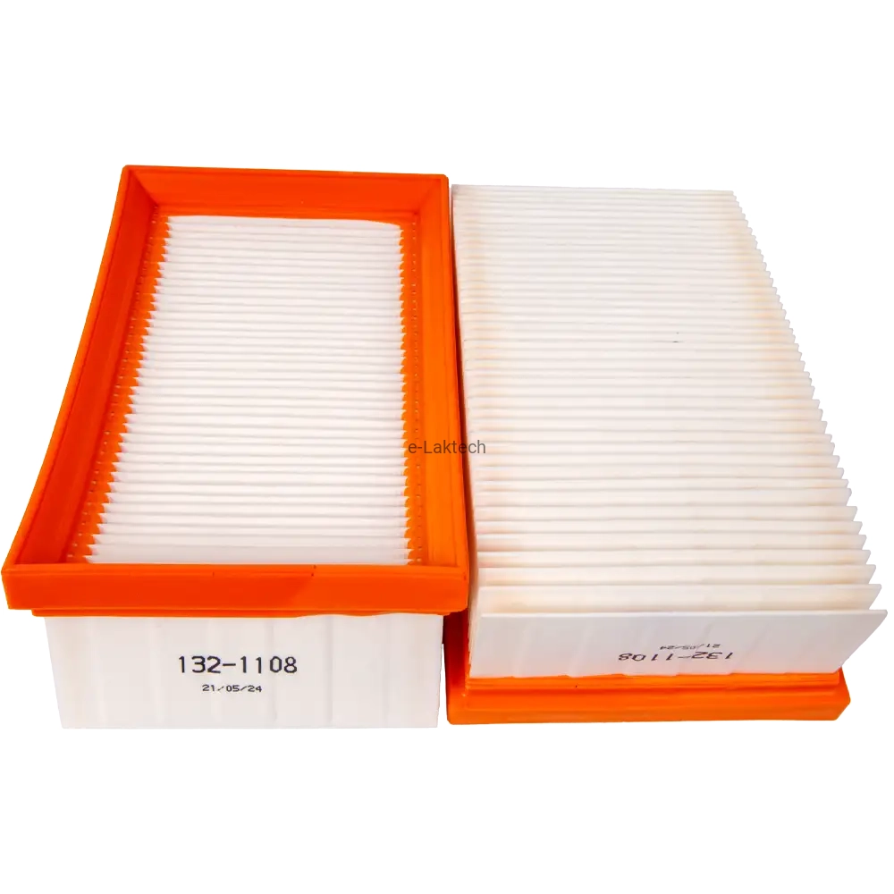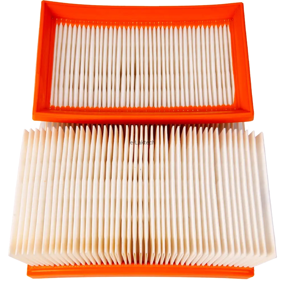 Poliestrowy materiał filtrujący o harmonijkowej konstrukcji maksymalizującej powierzchnię filtru.