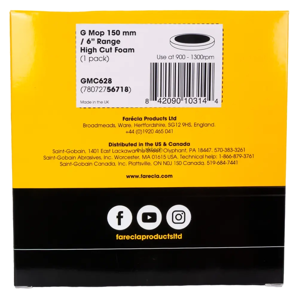 Profesjonalna gąbka ścierna Farecla G Mop GMC 628 o średnicy 150 mm to mocnościerny aplikator przeznaczony do pracy z pastami stosowanymi na sucho. Idealna do szybkiego usuwania defektów lakierniczych i uzyskiwania wysokiego połysku.