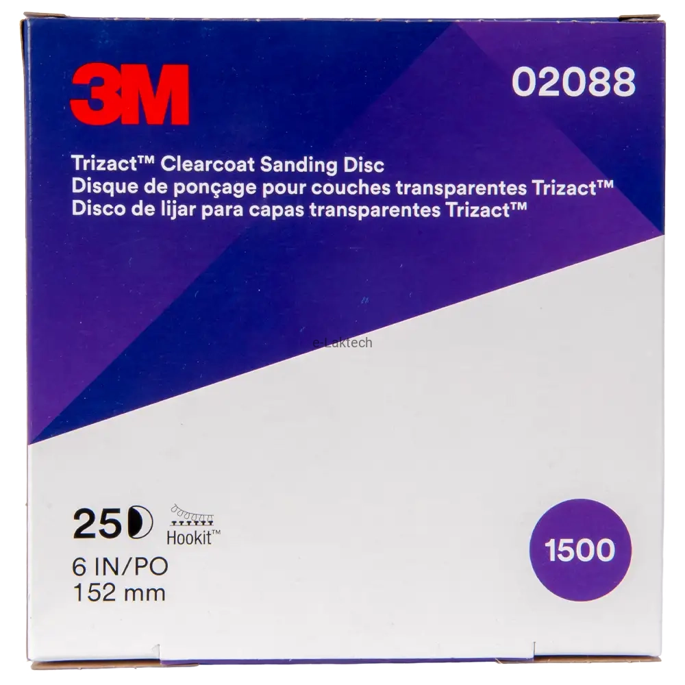 Krążki ścierne 3M™ Trizact™ Hookit™ o gradacji P1500 to idealne rozwiązanie do usuwania defektów lakieru bezbarwnego, takich jak wtrącenia czy struktura skórki pomarańczy.
