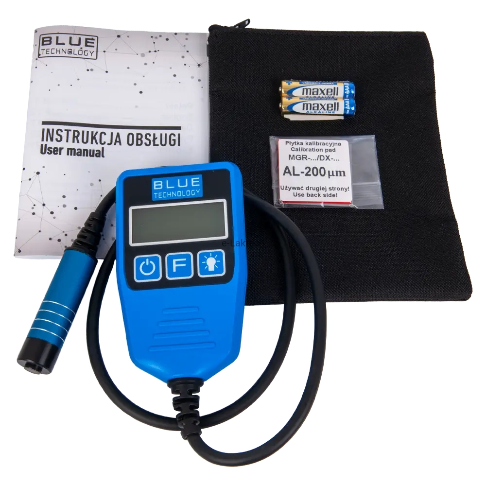 Miernik jest skalibrowany i gotowy do pracy. Modele z funkcją wykrywania aluminium są wyposażone w dwie płytki kalibracyjne: aluminiową i stalową, natomiast inne tylko w płytkę stalową.