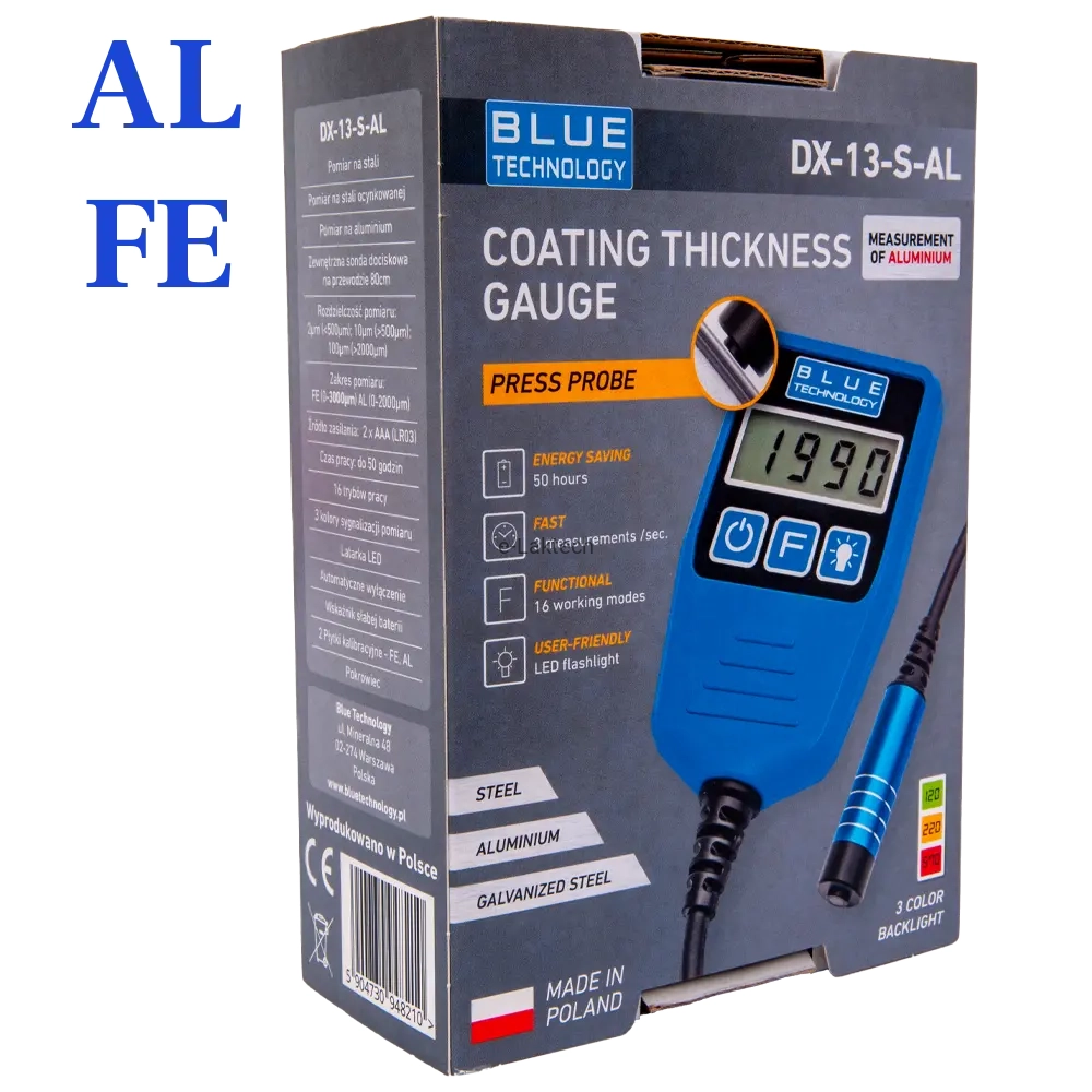 Miernik grubości lakieru DX-13-S-AL, FE (aluminium, stal, stal ocynkowana)