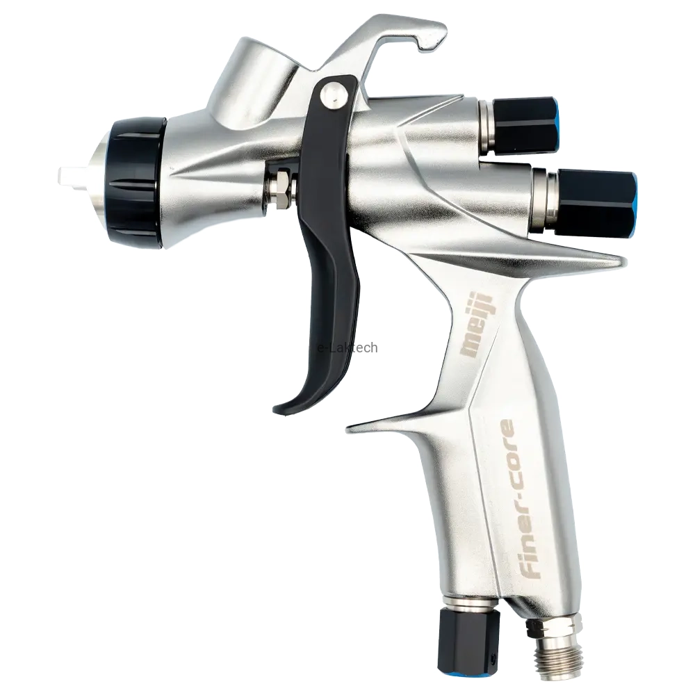 Seria Finer Core to najwyższej klasy pistolety lakiernicze. W połączeniu z elektronicznym ciśnieniomierzem marki Meiji jest najbardziej ergonomicznym pistoletem na rynku, który przewyższa wydajność większych pistoletów. Meiji wprowadziło unikalną technologię wysokiego stopnia natryskiwania MMFT (Meiji Micros Fine Technology), która ułatwia natryskiwanie przy niskim poziomie ciśnienia wg kontroli powietrza na wielu poziomach skutecznie doprowadzając go do otworu i rozpylając przez delikatną strukturę. Innowacyjne rozmieszczenie otworów w głowicach rozpylających minimalizuje wszelkie nierówności w aplikowanej warstwie lakieru.