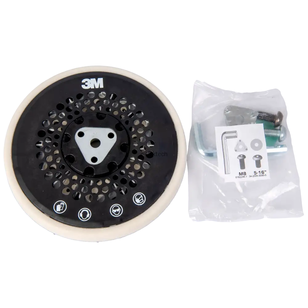 Uniwersalne mocowanie jest kompatybilne z podkładkami szlifierek 150 mm / 6 cali firm 3M, Festool oraz innych marek.