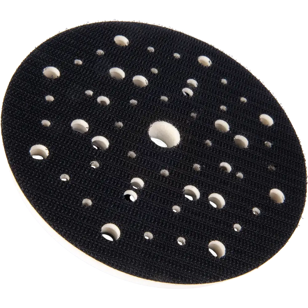 Dzięki zastosowaniu mocowania typu haczyk-pętelka w kształcie litery J, podkładka zapewnia dłuższe i trwalsze utrzymanie materiałów ściernych podczas pracy. System 52 otworów gwarantuje skuteczne odprowadzanie pyłu bez konieczności dokładnego dopasowywania układu otworów w krążku.