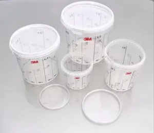 Przezroczyste plastikowe pokrywki pasujące do odpowiedniego rozmiaru kubka do mieszania 3M.