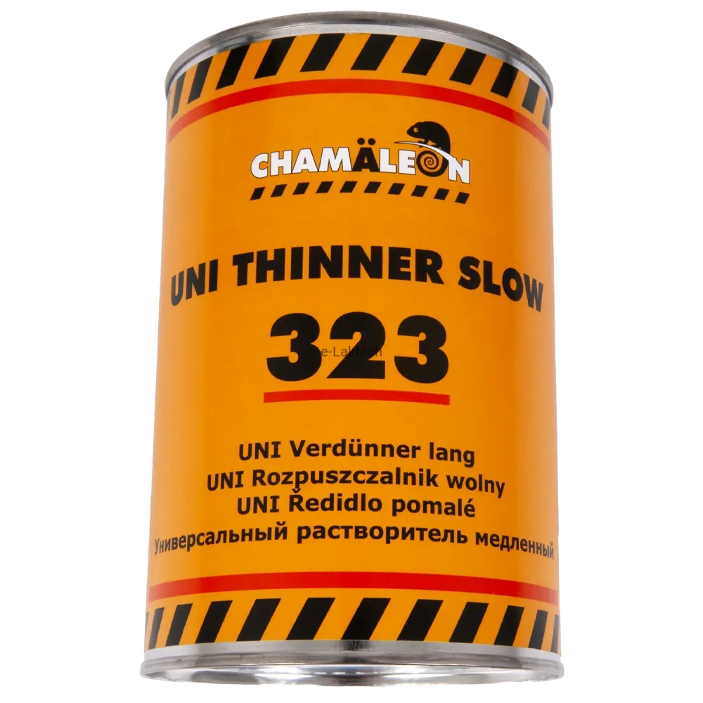 Opis produktu: 323 Rozcieńczalnik Uniwersalny Wolny to wolno parujący rozcieńczalnik uniwersalny przeznaczony do prawie wszystkich produktów akrylowych 2K. Zapewnia dłuższy czas aplikacji i jest stosowany do rozcieńczania farb i lakierów do pożądanej lepkości. Gwarantuje optymalne warunki aplikacji i schnięcia przy optymalnej lepkości naniesionego materiału.