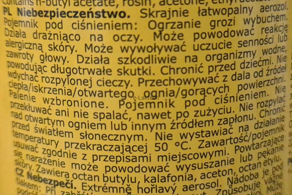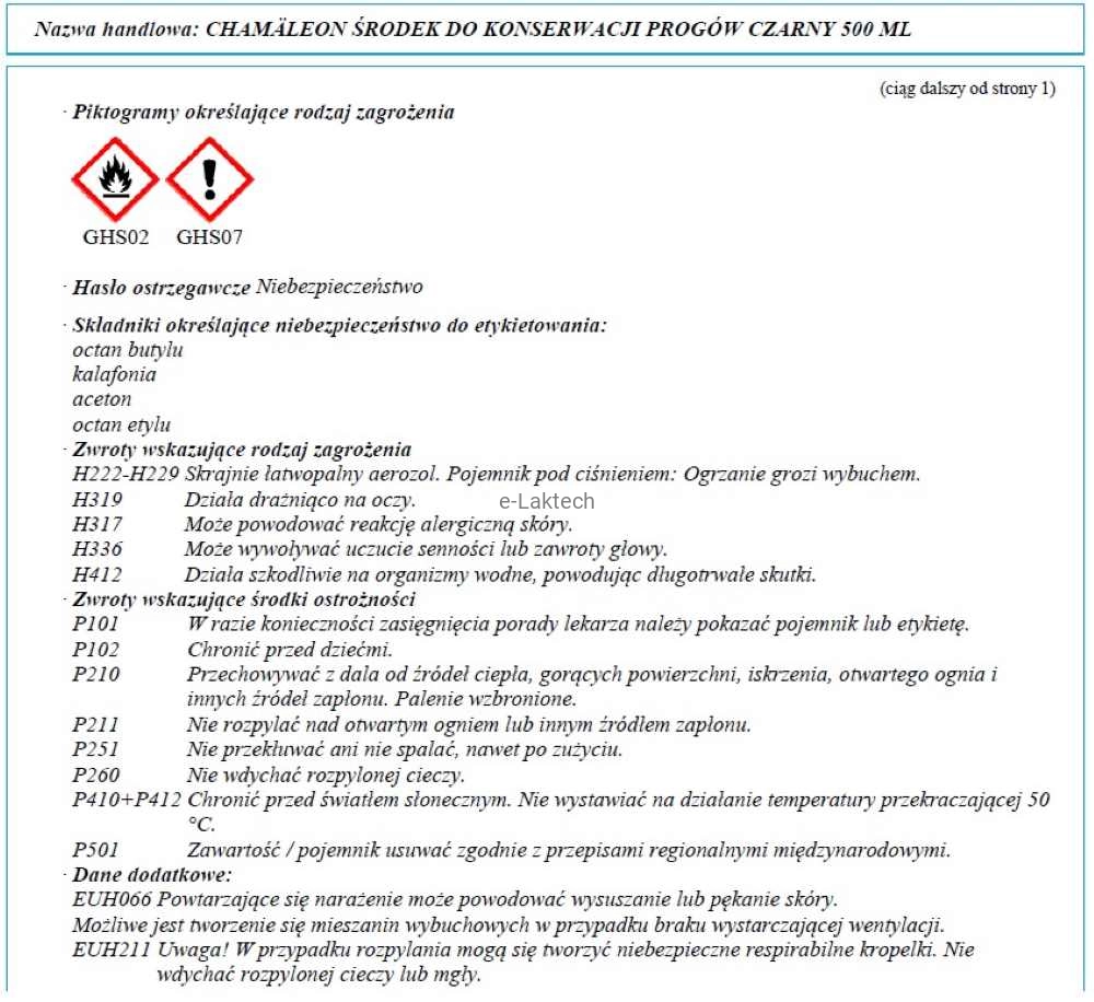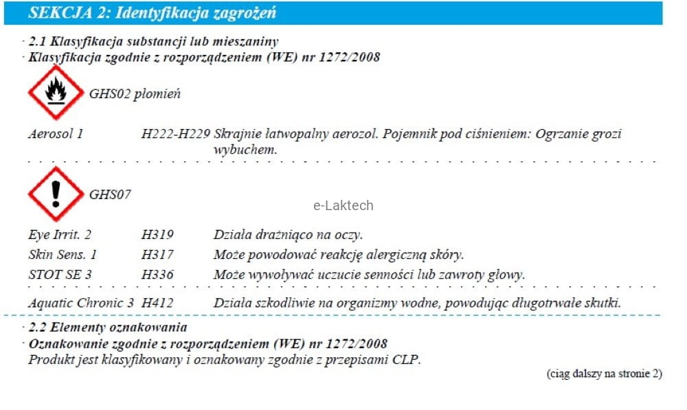 - EUH066 Powtarzające się narażenie może powodować wysuszanie lub pękanie skóry.