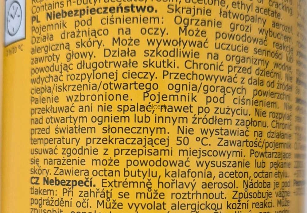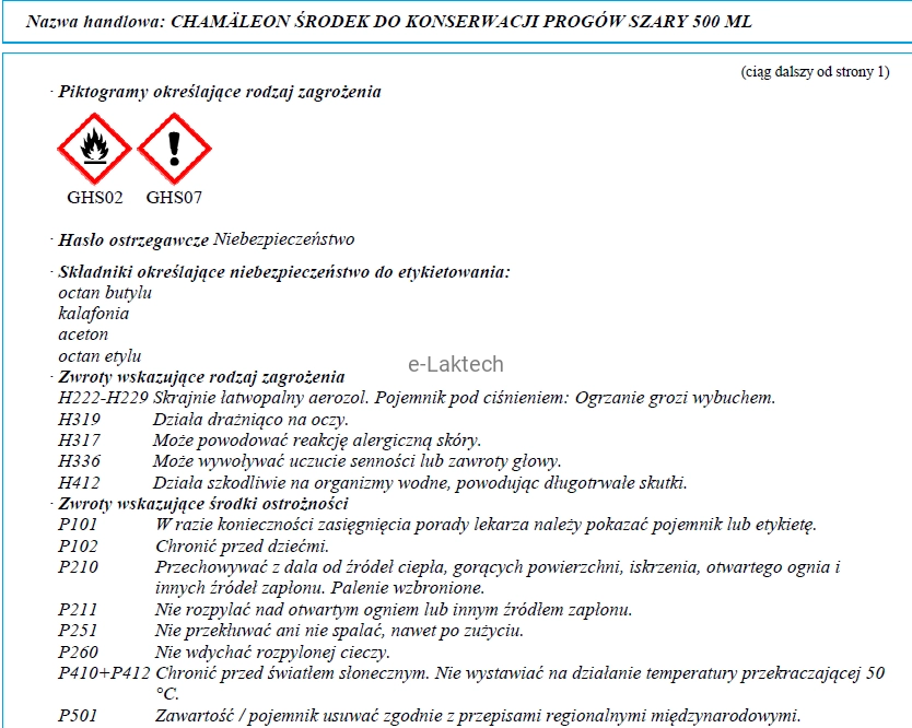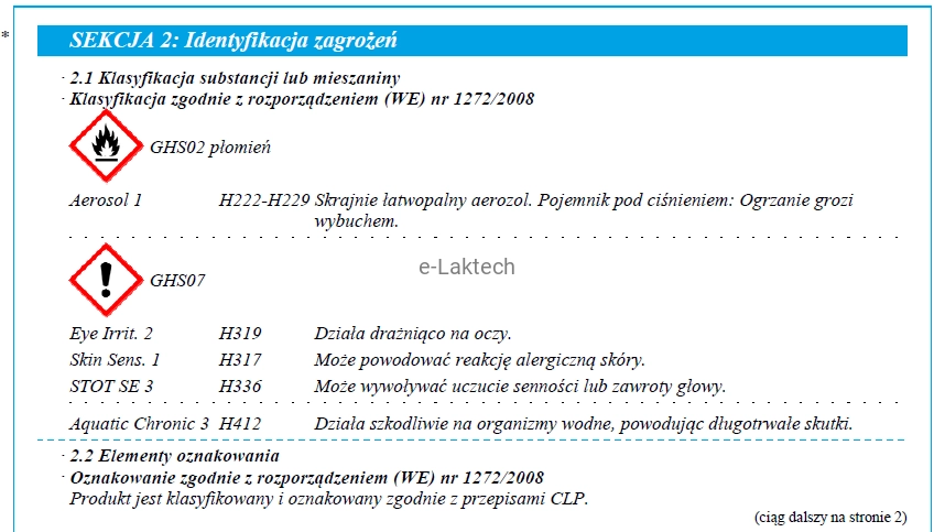 - EUH066 Powtarzające się narażenie może powodować wysuszanie lub pękanie skóry.