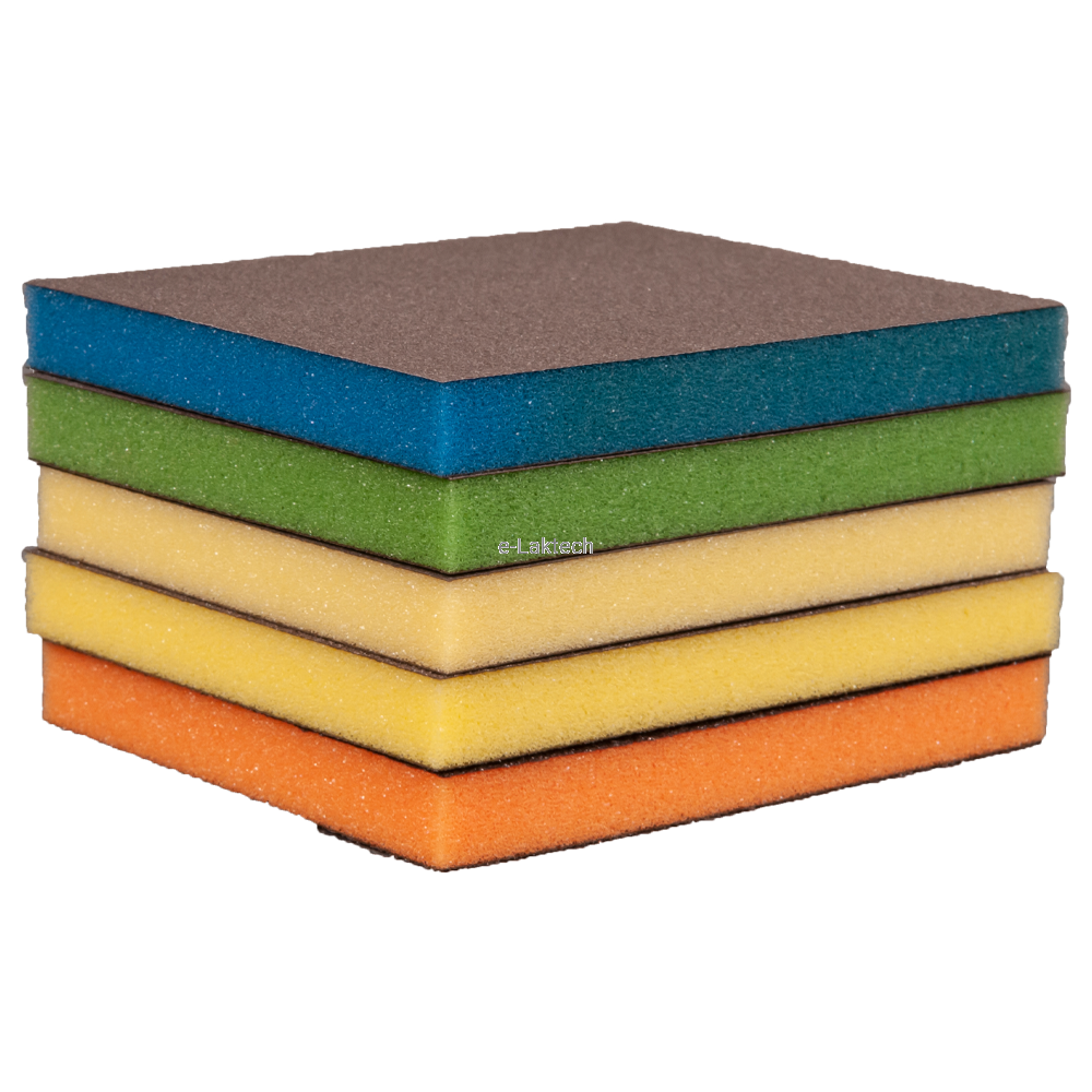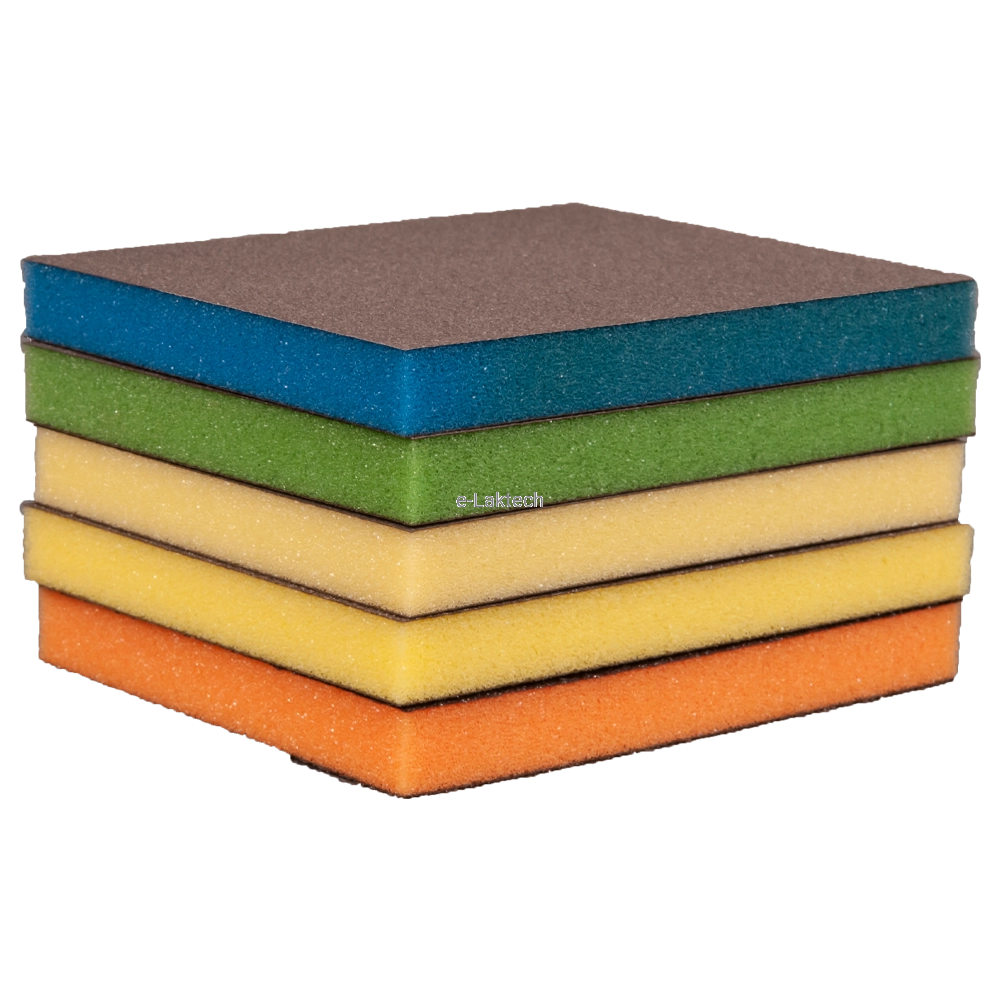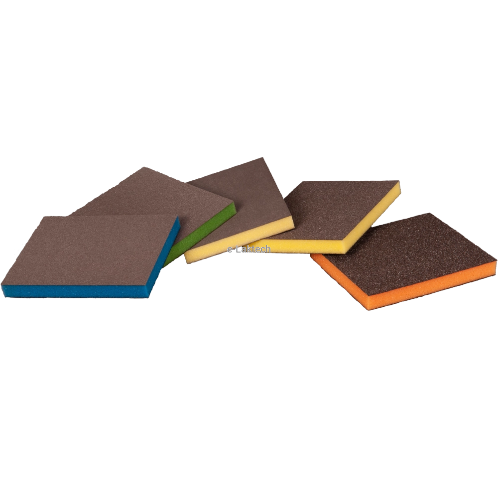 Indasa wszechstronna dwustronna gąbka ścierna. Materiał ścierny na gąbce daje nam możliwość szlifowania różnych powierzchni doskonale dopasowuje się do krzywizn i profili. Dzięki temu, że mamy materiał ścierny na gąbce kontrolujemy nacisk materiału ściernego powierzchnię.