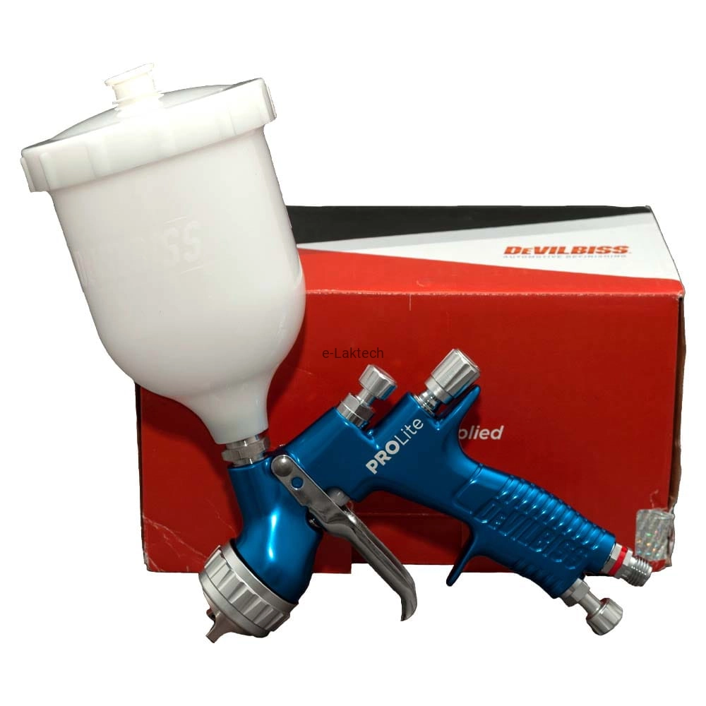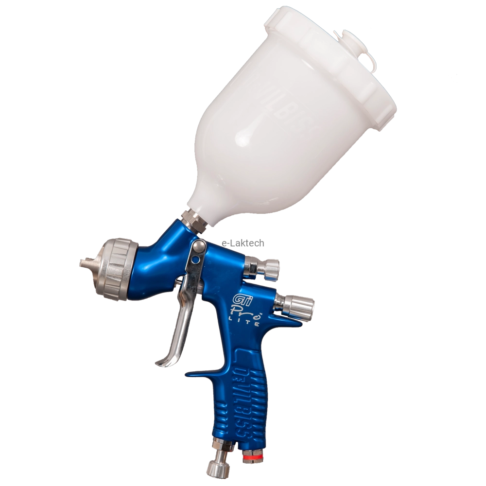 GTi Pro LITE DeVILBISS "i-system pro". Wykonany z niezwykłą dbałością i starannością. Technologia zapewnia bardzo wysoką jakość produktu oraz świetne walory użytkowe, min. podczas czyszczenia po użyciu produktów konwencjonalnych oraz wodorozcieńczalnych. Projekt pistoletu GTi Pro LITE to nowy pomysł, w którym fundamentalną rolę odegrała technika aplikacji produktów oraz ergonomia. Spust i uchwyt pistoletu zostały odpowiednio zaprojektowane tak, a by lakiernik podczas pracy miał jak najlepszy komfort lakierowania. GTi Pro LITE przeznaczony jest do bazy (konwencjonalnej/wodnej) jak również lakieru bezbarwnego podobnie jak jego poprzednik GTi Pro.