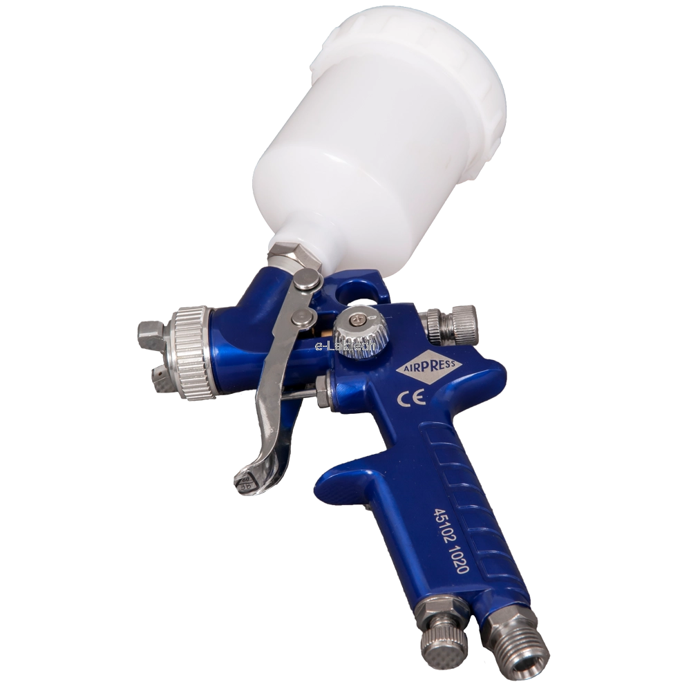 Pistolety mini serii 45102 są z grupy technologii HVLP. Niskociśnieniowe pistolety cechują się efektywniejszym nanoszeniem lakieru. Przeznaczone są do zaprawek i malowania małych elementów. Zminimalizowane gabaryty oraz zbiorniczek pozwala łatwo manewrować nawet w zagłębieniach (np. urządzeń). Dostępne są z dyszami 0,8 , 1,0 lub 1,2 mm do nakładania powłok z największą precyzją.