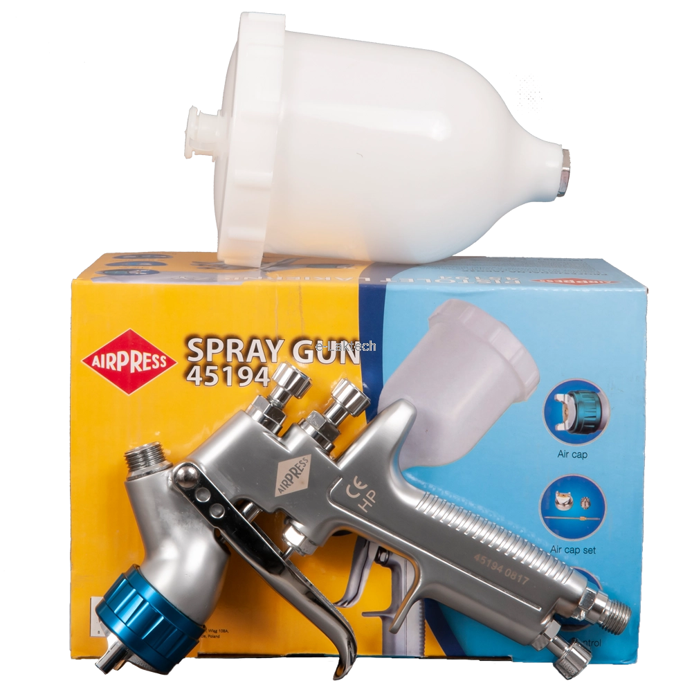 Wysokociśnieniowy pistolet lakierniczy 45194 AIRPRESS to pistolet dedykowany profesjonalistom. Zyskał uznanie wśród ogromnej rzeszy użytkowników dzięki niskiemu zapotrzebowaniu na powietrze i doskonale rozbitych cząstek materiału. Szeroki asortyment dysz od 1.3 mm do 2.2 mm. Estetyka tego pistoletu ujmuje lakierników. Przeznaczony do malowania wszystkimi rodzajami farb i lakierów.