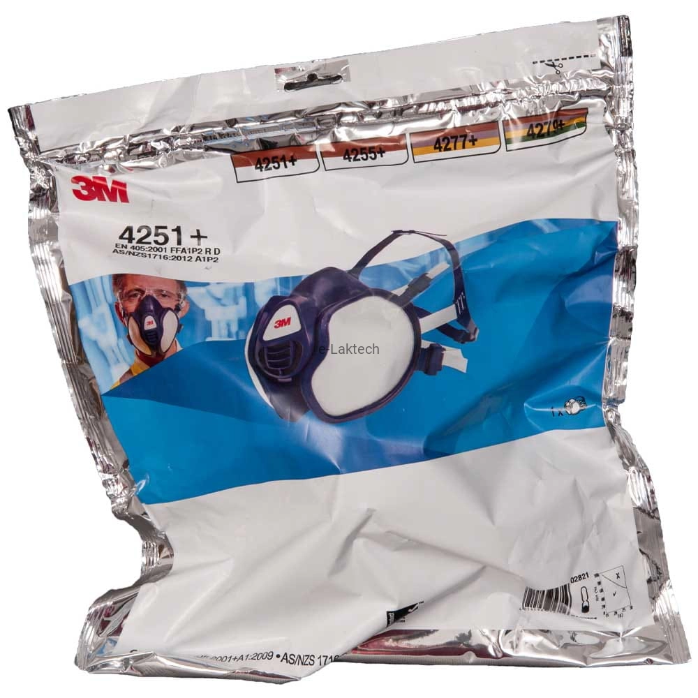 Półmaska 3M™ 4251+ to gotowa do użycia półmaska nie wymagająca obsługi, opracowana w celu zapewnienia wygodnej ochrony przed parami pochodzenia organicznego i pyłem, z którymi można spotkać się podczas pracy w przemyśle.